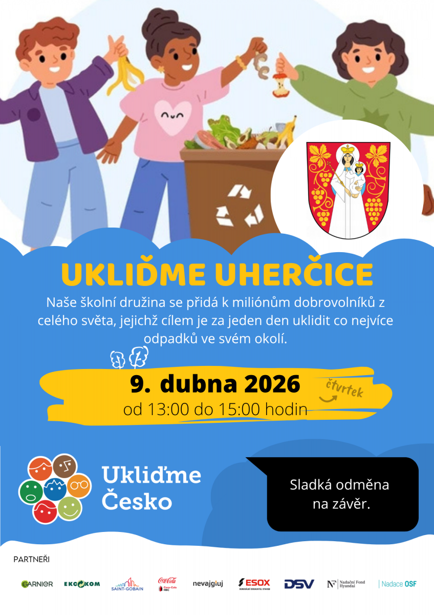 Ve čtvrtek 9.4.2026 se školní družina zapojí do akce Ukliďme Česko. Společně pomůžeme uklidit okolí naší obce a přispějeme k čistějšímu prostředí.